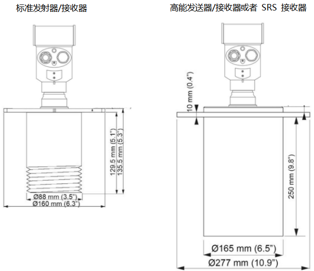 发射单元MT/接收单元MR可以在严酷的测量条件下工作,比如:颗粒大小不同,污染,外部充填,噪音,高温,起尘严重或介质具有磨损性。