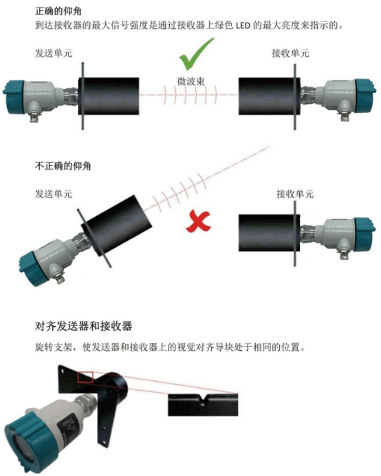 1.微波是能量的一种偏振形式。因此,要把接收器的单元排列在相同的空间平面。如果这些单元的方向不相同,接收到的能量将减少。如果接收器内的单元彼此成90°夹角,检测器将失去作用而无法检测到微波束。只要发送器和接收器具有相同的角度和高度,则实际安装角度就无关紧要。法兰都标记有一个对位凹痕以助于正确安装。