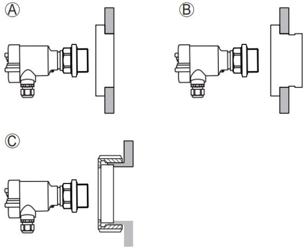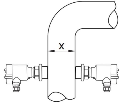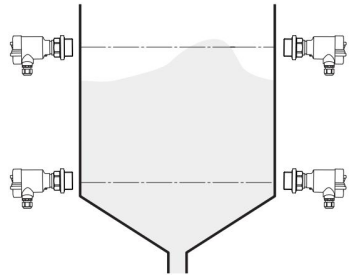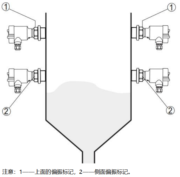 2.当寻找安装位置时,每个单元应尽量定位和安装在窗口的内部位置以使与容器的内壁齐平,并且能很大限度减少材料的堆积。系统能够穿透一定量的各种产品堆积,但是发送器/接收器的位置越佳,则操作越可靠。